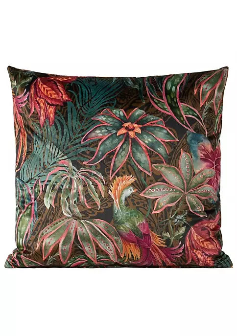 A garden of exotic flora and fauna bursting with bright tropical color will push your imagination to new reaches. This unique, printed plush velvet design is made with 100% polyester fabric that is naturally soft, supple, color-fast, and machine washable. Choose from multiple sizes to elevate your space.